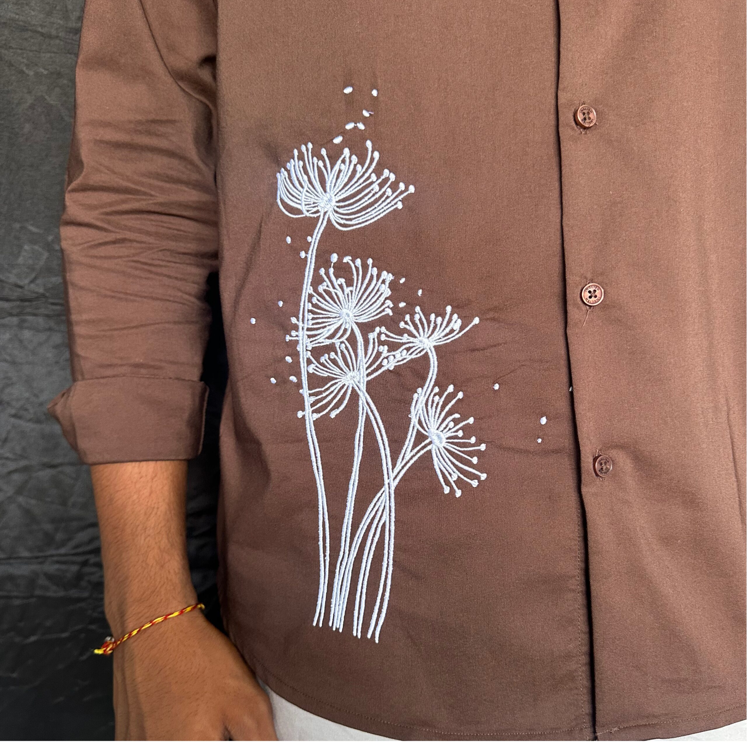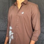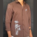 FLORAL EMBROIDERY BROWN DESIGNER SHIRT